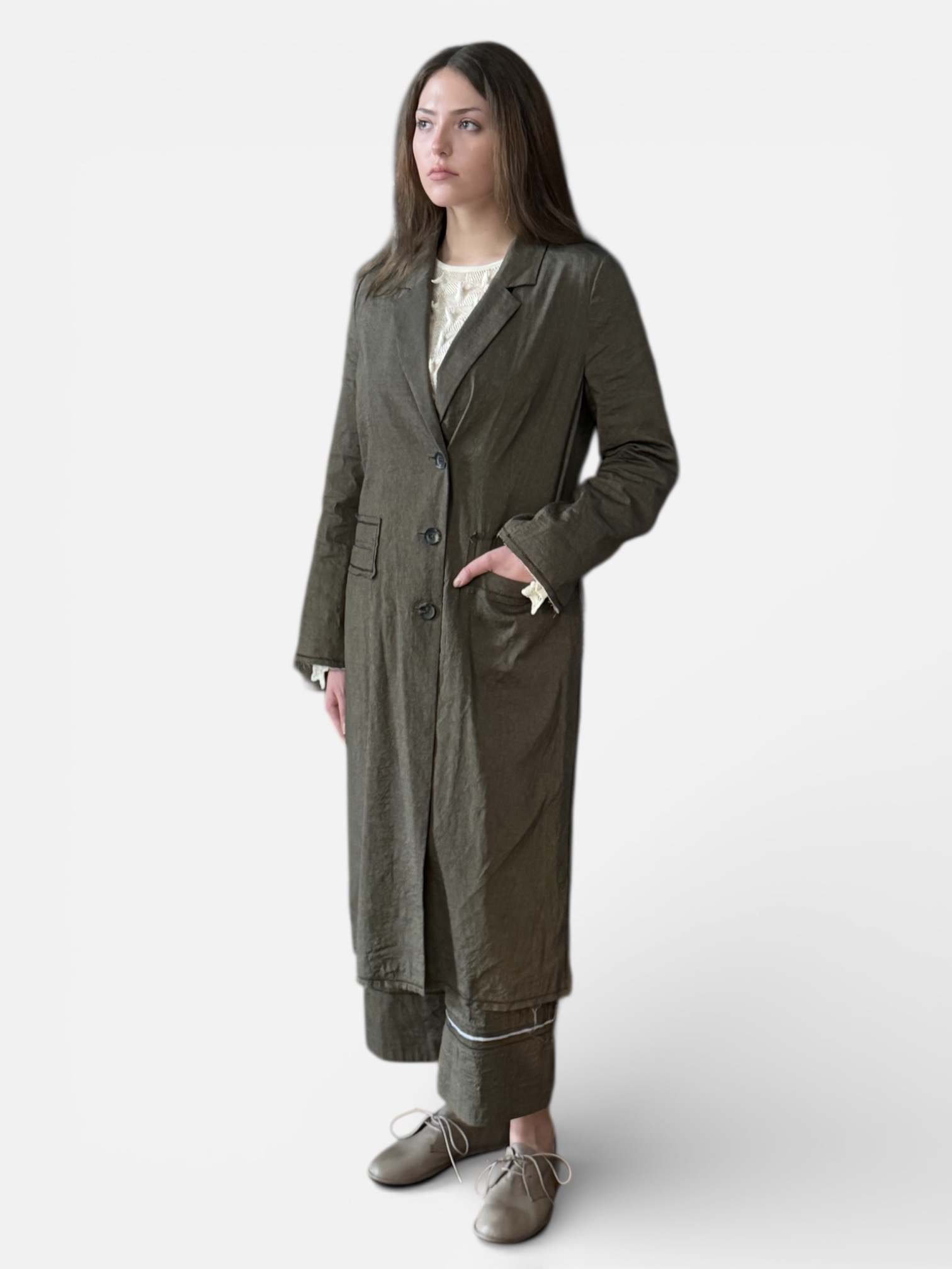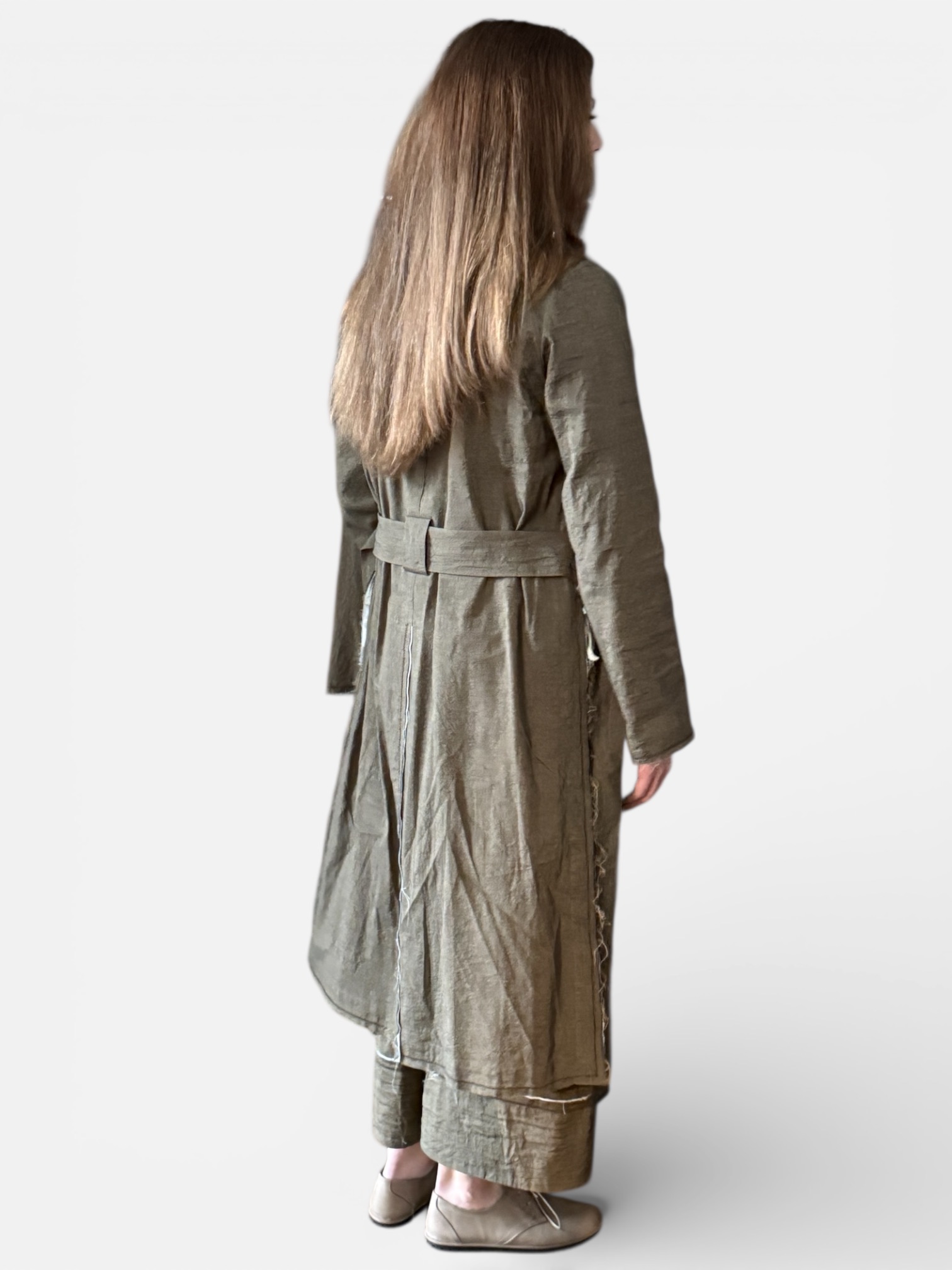 Mantel „Brad“ mit seitlichen Schlitzen und offenen Nähten, teilgefüttert.