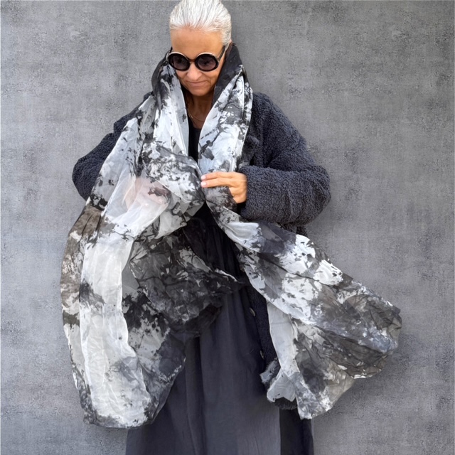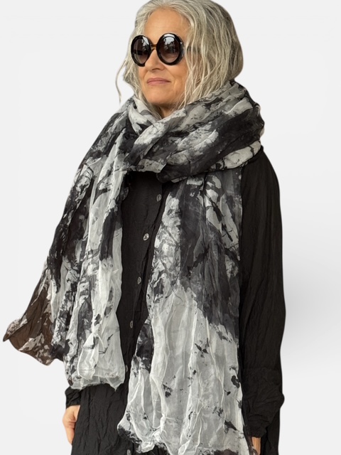 Schal „Gutesegel“ aus Seidenorganza, handcoloriert