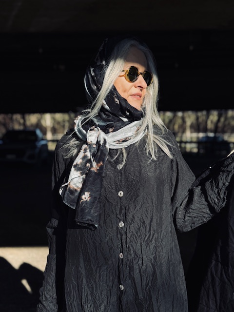Seidenschal „Wechselber“ aus Wäscheseide, handcoloriert