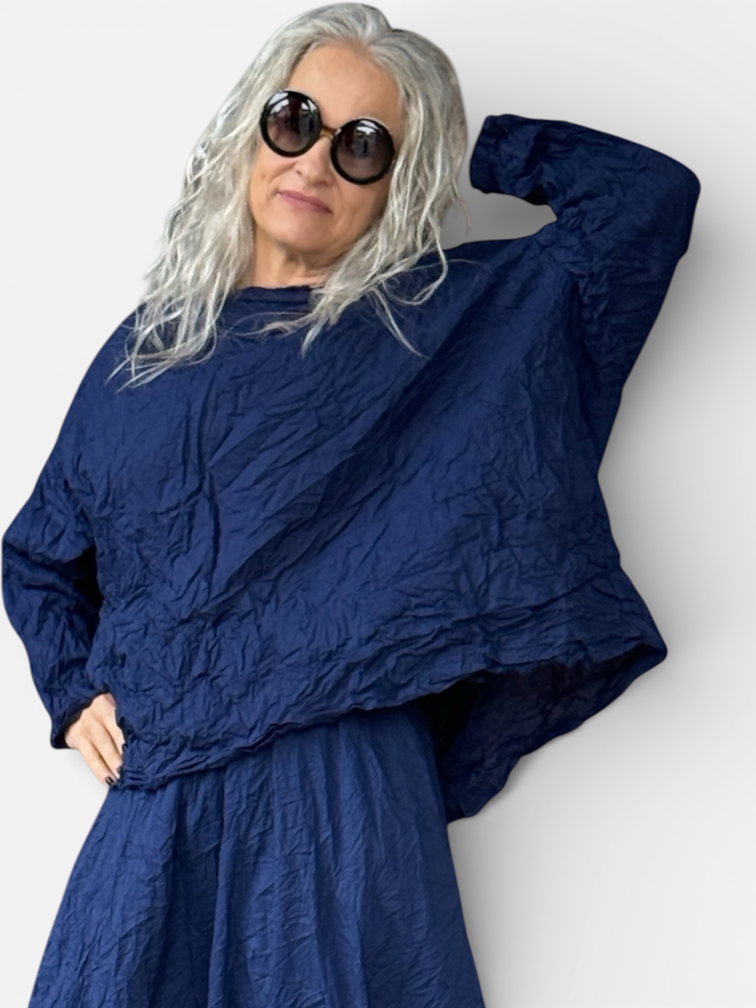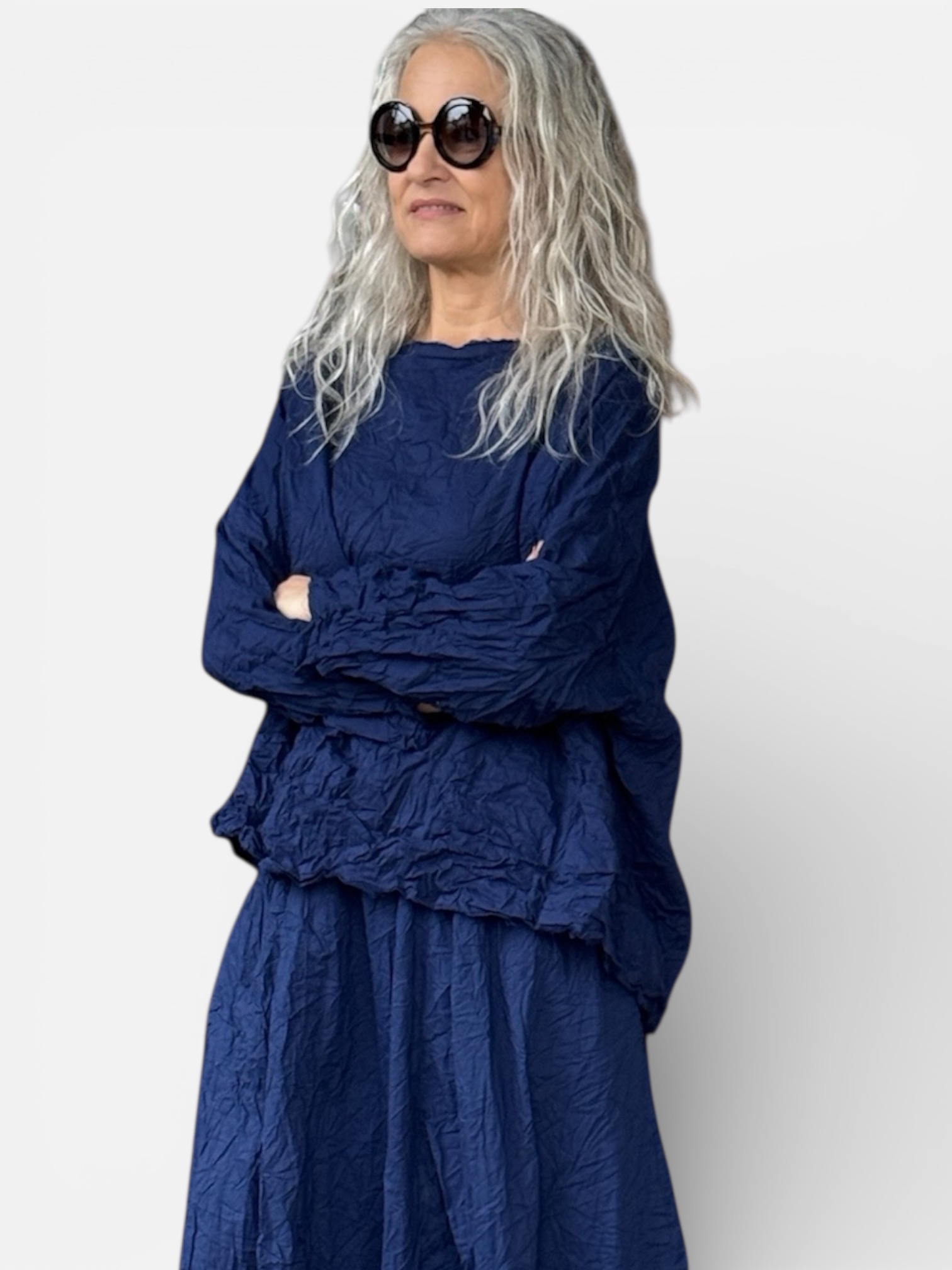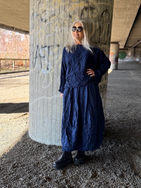Für den Knitterlook gewaschenes Teil im beiliegenden Säckli trocknen lassen. Nach einem Tag rausnehmen und aufhängen.