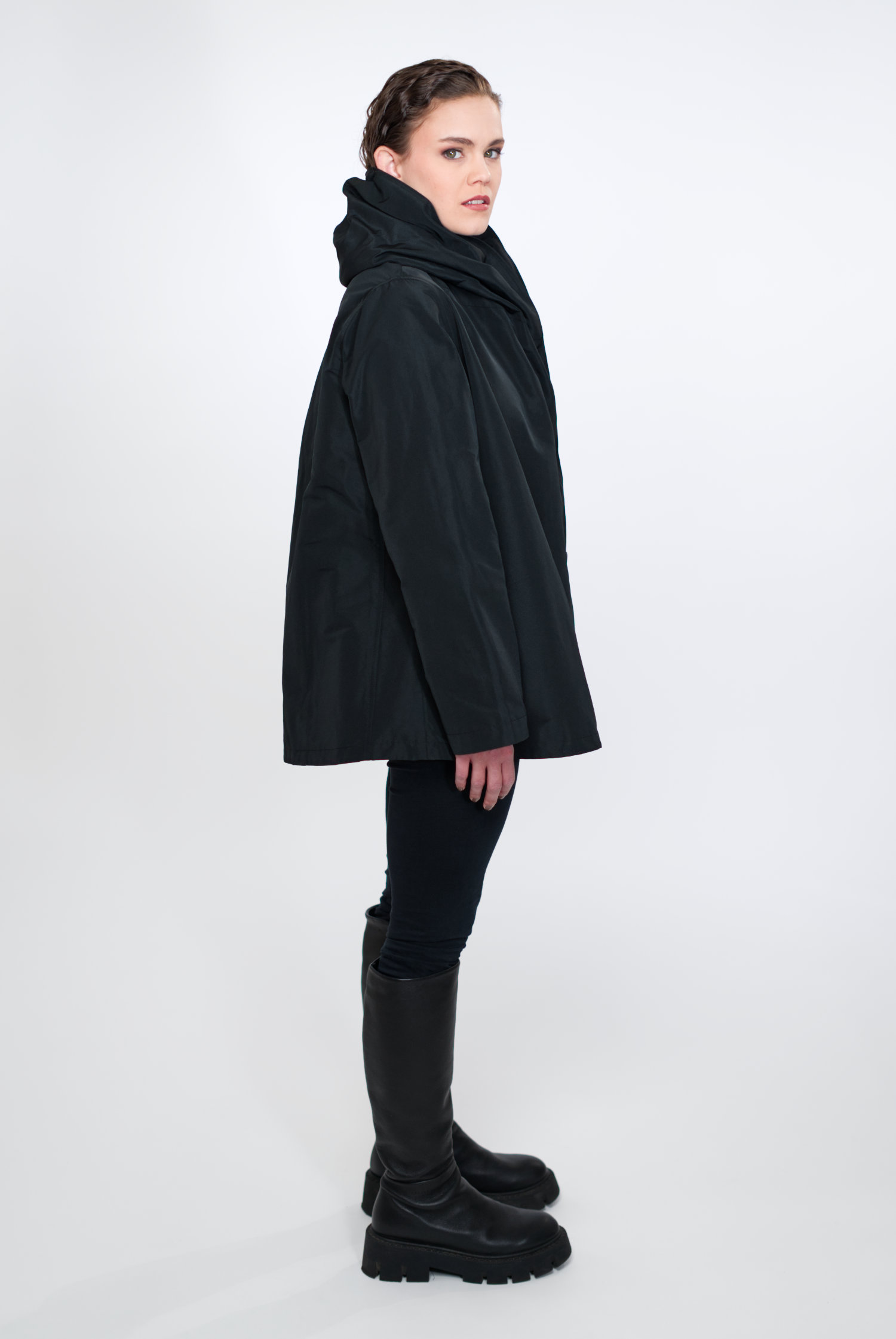 VIOLA ist nicht einfach nur eine Jacke, sie ist ein Statement für Modebewusstsein und Nachhaltigkeit. Sie ist charakterisiert durch ihre zeitlose A-Linie, den Schalkragen mit integrierter Kapuze, versteckte Taschen und umweltfreundliche Materialien.