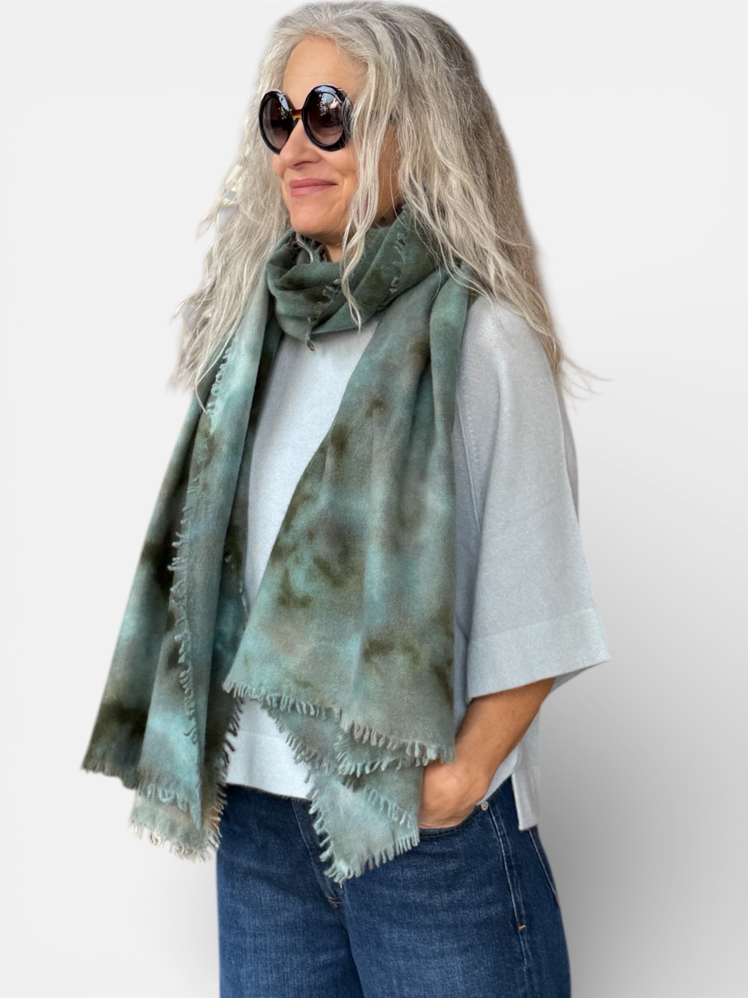Kaschmir-Foulard „Fusion“ pine/needle aus 100% hochwertigem Felted-Kaschmir, handgefärbt